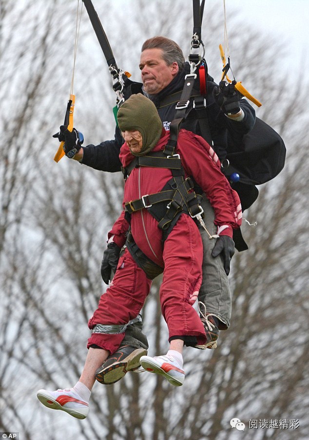 据美国《纽约每日新闻》11月9日报道,家住纽约Howes Cave的百岁老人埃莉诺·坎宁安(EleanorCunningham)于上周六完成了人生中第三次高空跳伞,以此庆祝自己的100岁生日。