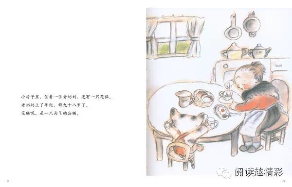 第二天,神奇的事情发生了:原本觉得自己老了的奶奶一下子进入5岁的状态。她来到田野中闻着花香;轻松地跳过了河;像猫一样的会钓鱼了……老奶奶特别高兴,她从内心发出感慨——