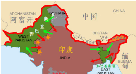 假如那场战争是巴基斯坦赢了,或者没有这场战争,今天的巴基斯坦除了跟我们中国接壤的国土,在印度接近缅甸的地方还有块约15万平方千米的飞地“东巴基斯坦”。