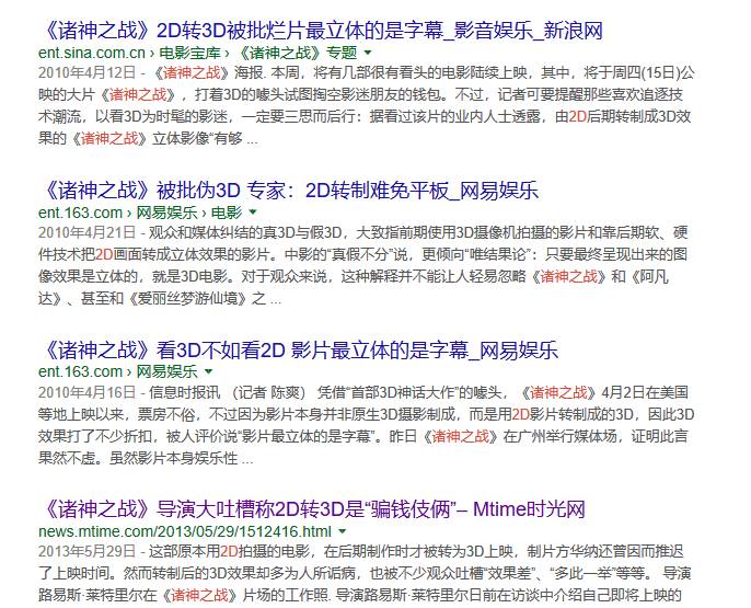 这种作法,最常见的是被网友吐槽为“只有字幕最3D”,比如《诸神之战》。