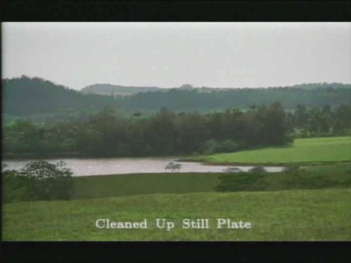制作过程是:先拍摄湖水实景;摄影棚内拍摄人物;电脑CGI(电脑三维动画)制作恐龙;把上述三者叠加到一个画面。如下图所示: