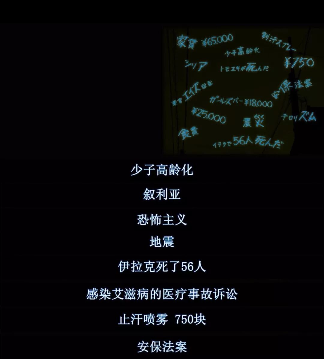 她的心境,反映了日本都市人普遍的心理状态,人们已经迷失在了钢铁铸成对的水泥森林里,不得不面对生活的折磨与社会的不公。