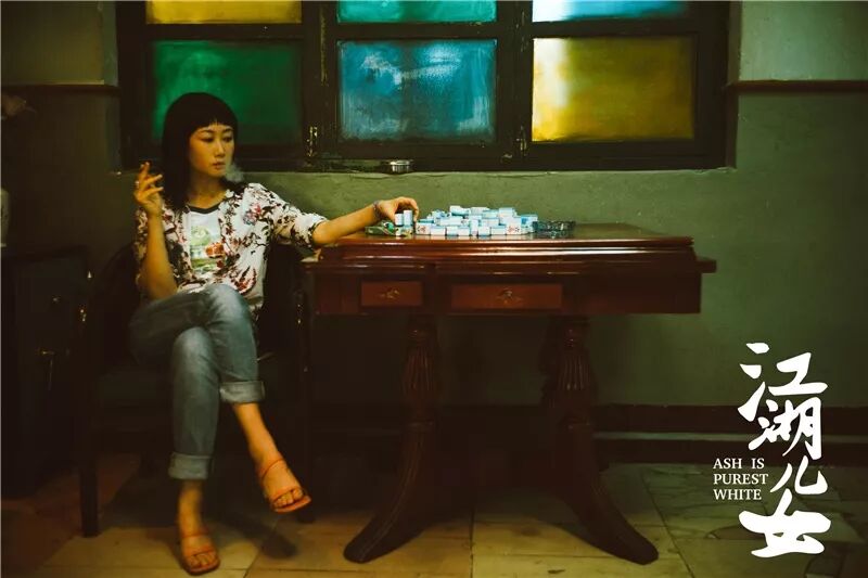 巧巧(赵涛饰)故作淡然,坐在麻将桌旁抽烟