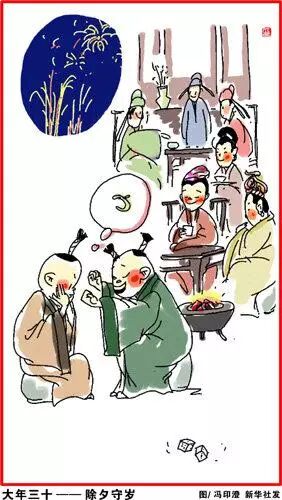 大年初一,金鸡报晓。晚辈给长辈拜年,长辈给压岁钱,压住邪祟。