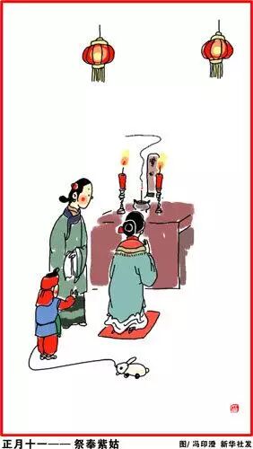 正月十一,祭奉紫姑。深受压迫的女性,把她奉为弱女子的保护神。