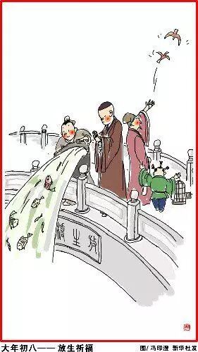 大年初八,放生祈福。众星下界之日,制小灯燃而祭之,一寸光阴一寸金。