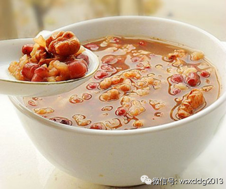 做法:1)准备适量核桃仁、红豆、大米淘洗干净。