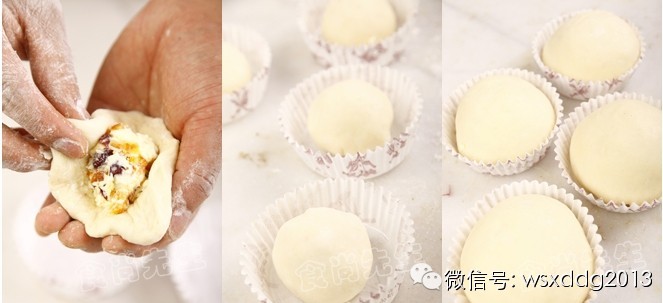 4. 将面团包入30g的奶酪馅。