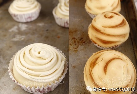 7. 在步骤6的表面挤上雪白面糊。