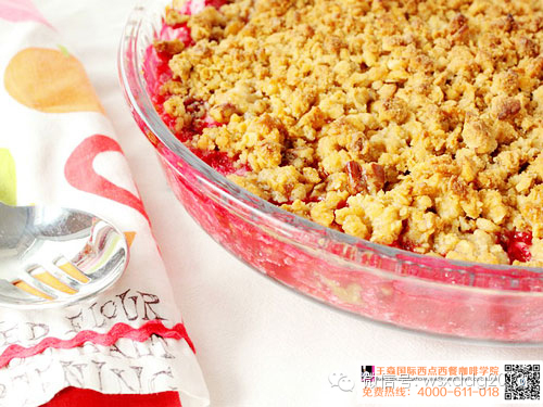 【覆盆子燕麦面包屑烤物】这是一款介于早餐和甜点之间的美味,将覆盆子平铺在焙盘最底层,将面包屑和燕麦混合,铺在最上面进行烤制,香甜的口感可想而知,还可以将它冷藏一天之后,搭配优格酸奶享用,别有一番味道。