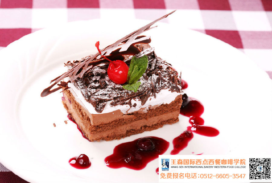 德国最知名的蛋糕。上世纪30年代,德国西南部黑森林地区盛产樱桃,丰收时农家会把樱桃做酒做蛋糕,甚至把过剩的樱桃塞进蛋糕层里做馅,这种原材料都来 自黑森林地区的蛋糕,就以黑森林命名。“这蛋糕除了一定要有樱桃与樱桃酒(Kirschwasser),还要有黑巧克力碎放在蛋糕面上,看起来才像个‘黑 森林’;巧克力碎要用手掰,不能用机器切,有粗糙感才像个森林。还可以用鲜樱桃汁做果冻,塞在蛋糕里,是更高档的做法。”