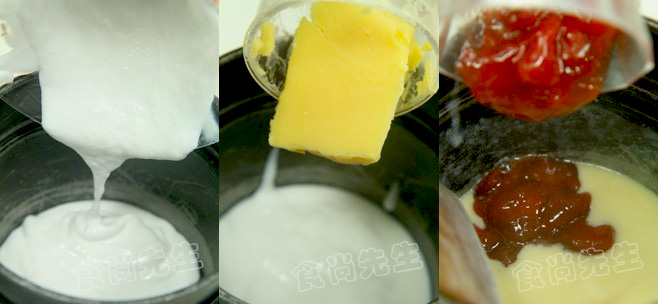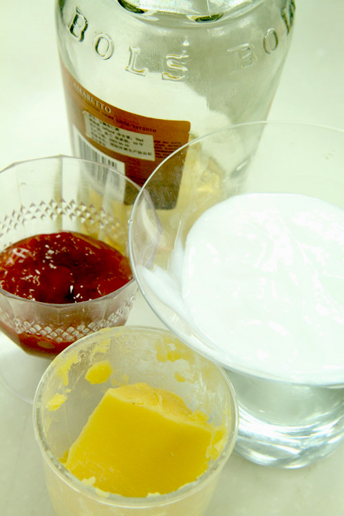 3.加入草莓果酱后迅速拌匀,如果果酱是冷藏过的,那么水温要稍微热点。