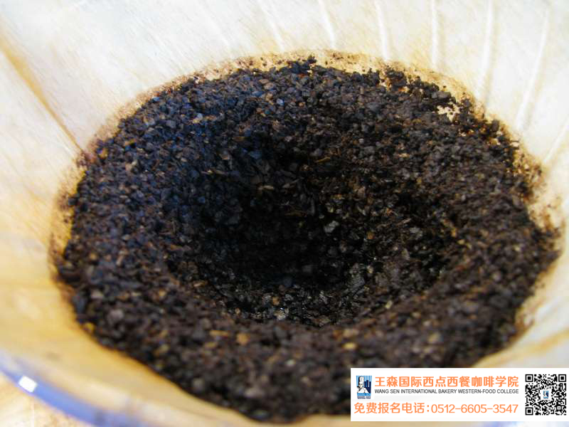 如下图是王森学校咖啡甜点班童鞋练习过后较完美的手冲咖啡渣平均布粉的现像