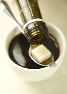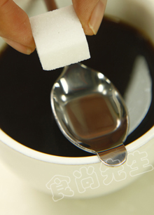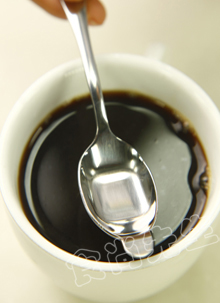 2.将皇家咖啡匙置于火上加温后,架于咖啡杯口。