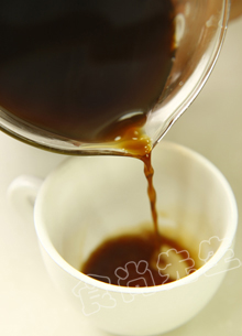 1.在杯中加入少许热水(份量外),温杯,然后将热咖啡液倒入用杯中待用。