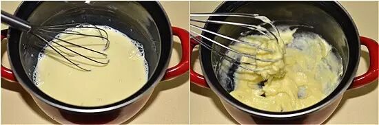 1、先制作卡仕达酱,将材料一起放入锅中搅拌均匀。