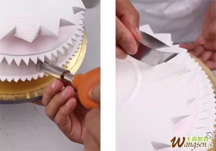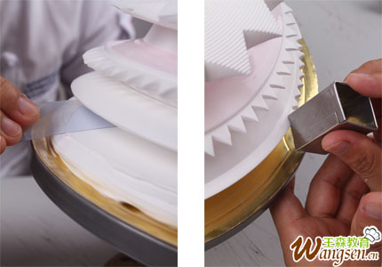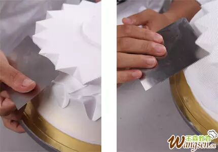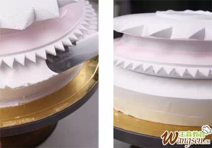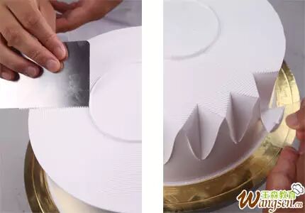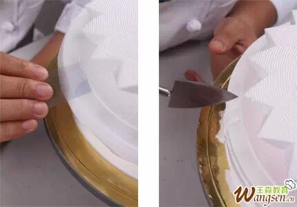 3、用刮片将顶部与侧面的奶油切开。