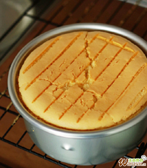 8、烤箱预热140度,放入底层烤60分钟(8寸70分钟)。