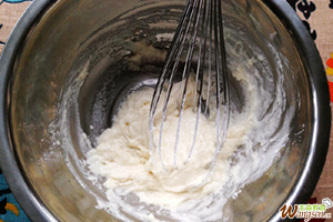 先将水和油乳化是为了下一步更好地混合面粉,让其不易结块,避免出现面筋。