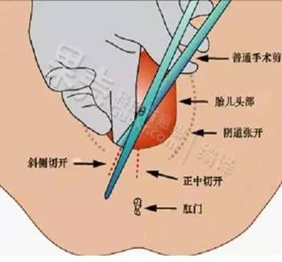3. 手术操作:会阴下方左侧(或右侧)向外下45⁰左右切开3-4厘米,切开的组织包括皮肤、皮下脂肪、肌肉、阴道粘膜、缝合时依次按照解剖层次完成这四层组织的对合。