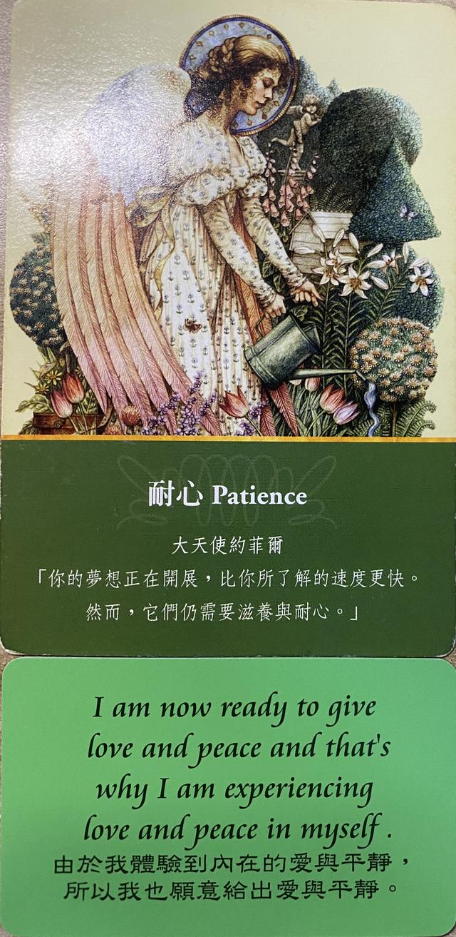 指引:当你在做事的时候,请对你要做的事保持足够的耐心。这有助于你在专注中体验到安宁和回到当下,也能让你更加快速而优秀的完成你的目标。当你拥有足够的耐心做你在做的事,你会发现,这件事也以比你所想还要快的速度完成着。