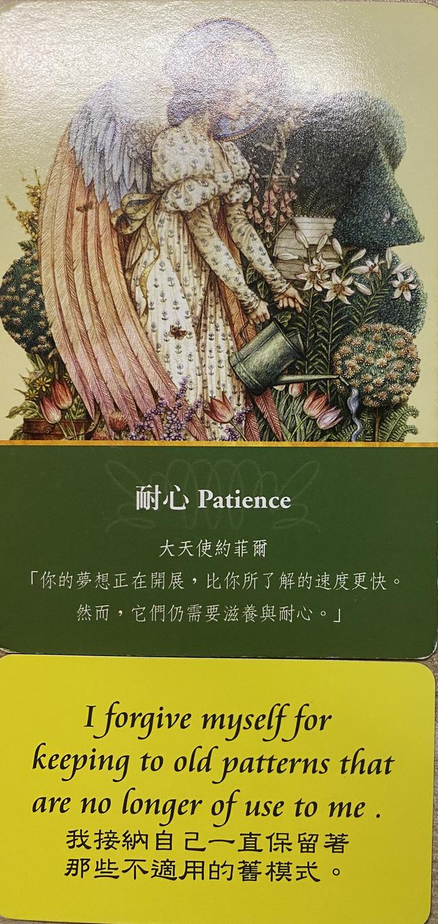 指引:今天,请更有耐心的面对你的生活,接纳你身上一些不完美的地方,也接纳一些旧有模式。不需要你刻意改变自己,只要更加有耐心的,关注当下的去完成你今天要完成的事,专注在做事中的每一点一滴即可。