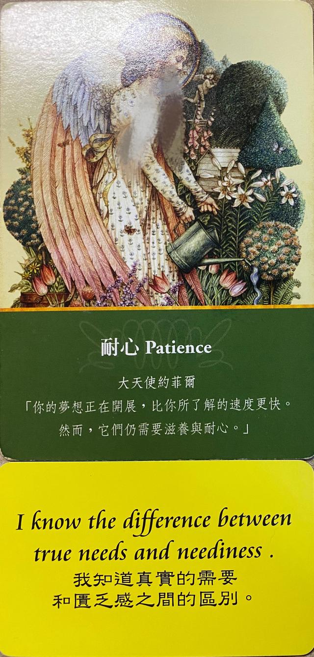 指引:请对于你要做的事有一定的耐心,并且清楚的看到当你很急着想要完成一件事的时候,那并非是你真实的需求,而是你内在的匮乏感,让你害怕面对“无”这件事。那么当你安住于当下,有更多的耐心,并且感受每一个当下给予你的感觉的时候,你内在的匮乏会得到治愈,乃至于真正的充实起来。那么你在做的事同样也会以比你所想还要快很多的速度完成着。