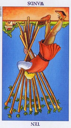 分析:牌面上的人抱着十根权杖,累得要死的模样,并且处于代表放弃的逆位。也就意味着,或许过去里曾经有人喜欢过你,但在追求和努力了一段时间后,发现搞定你真的太难太辛苦了,于是很难做到牌面上的人那样苦苦坚持,于是就放弃了。因此你身边当前即使有人还没完全放下你,也是木有人对你念念不忘的。