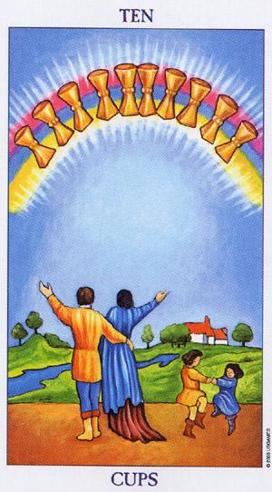 分析:牌面上有十个代表情感的圣杯!并且牌面上的两个人是非常幸福的一家人,很直接的说明了,确实当下有人心里对你念念不忘,甚至是想要和你结婚走到最后的那种念念不忘。并且对你有这样想法的人还不少,甚至会是超过3个的哦!