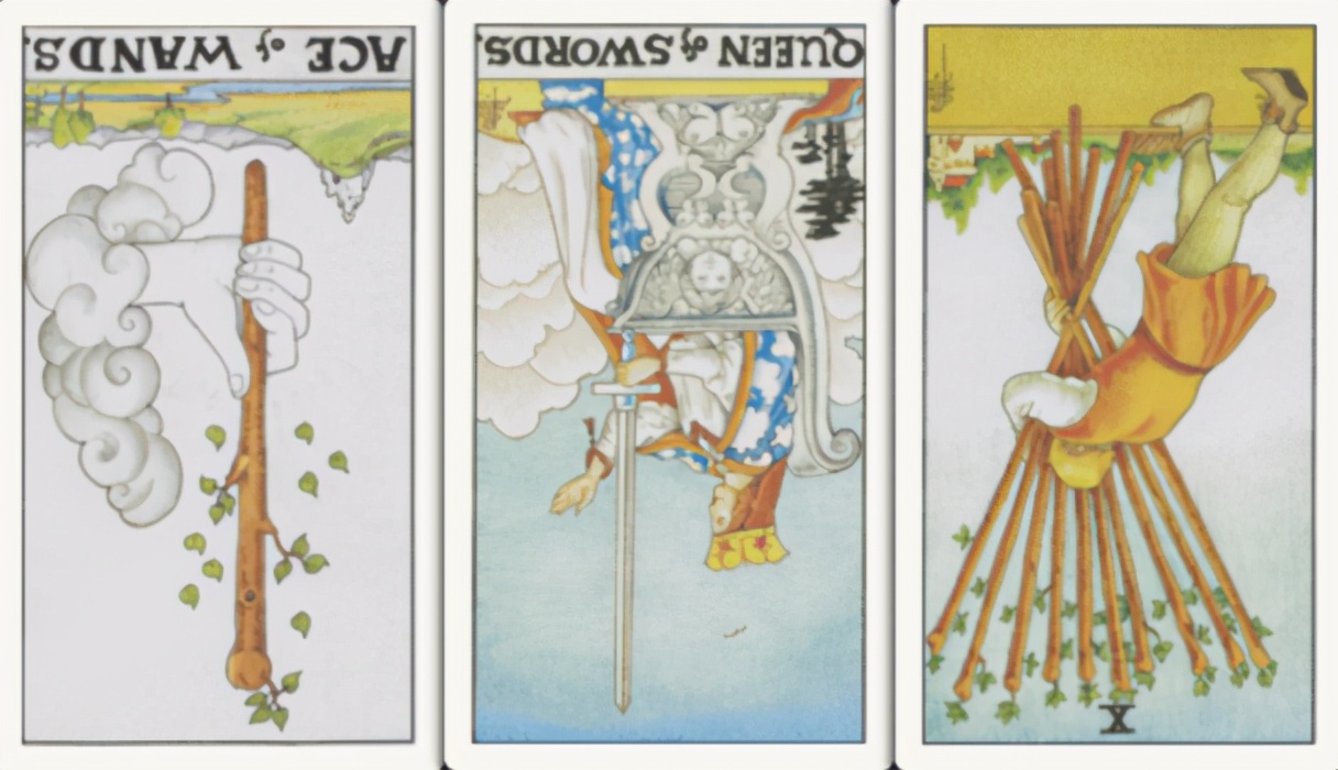 卜牌:权杖首牌- 宝剑皇后- 权杖十-