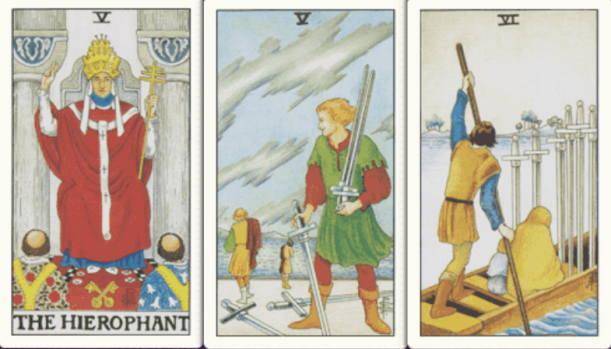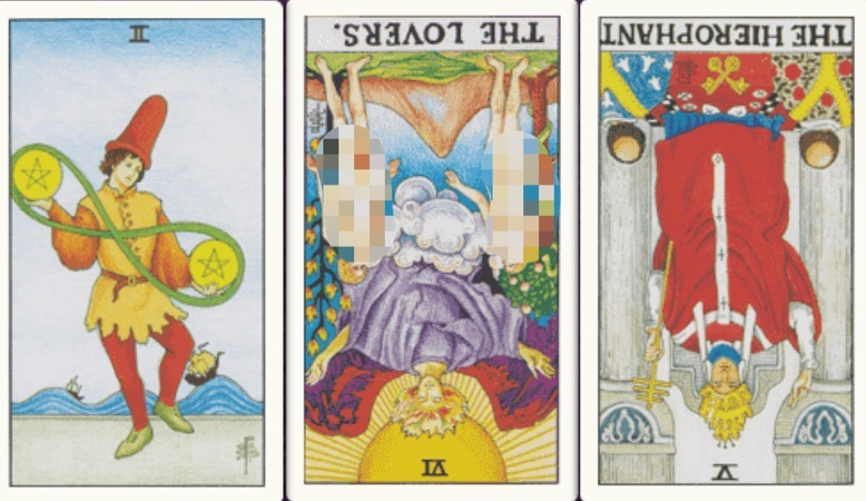 卜牌:教皇+ 宝剑五+ 宝剑六+