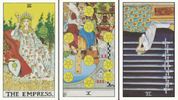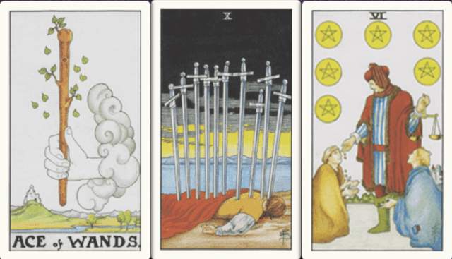 下半年:权杖首牌+ 宝剑十+ 星币六+