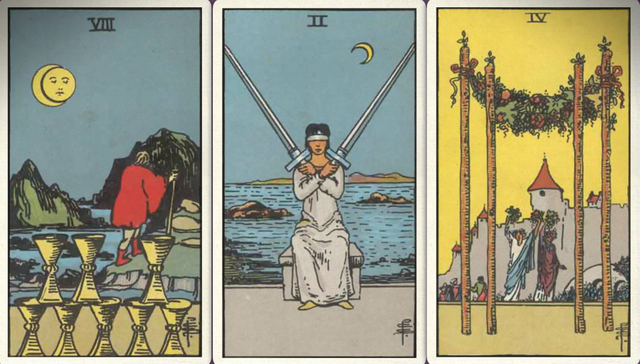 上半年:圣杯八+ 宝剑二+ 权杖四+