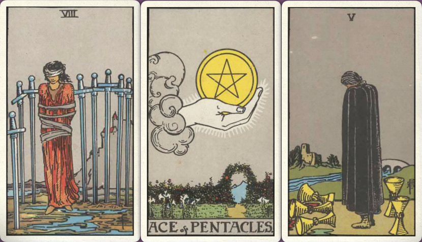 下半年:宝剑八+ 星币首牌+ 圣杯五+