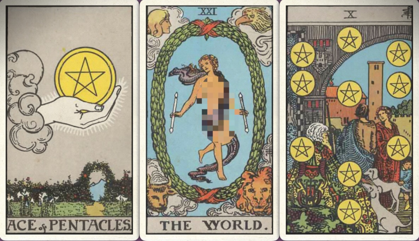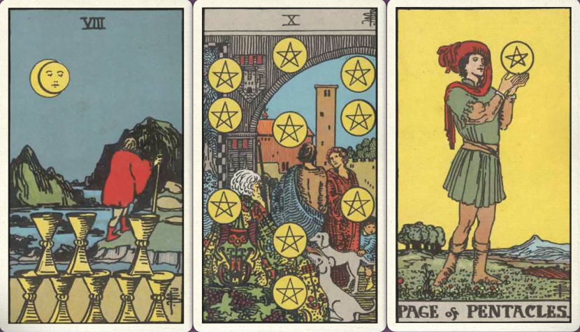 下半年:圣杯八+ 星币十+ 星币侍从+
