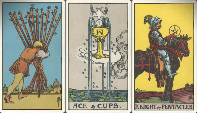 上半年:权杖十+ 圣杯首牌+ 星币骑士+