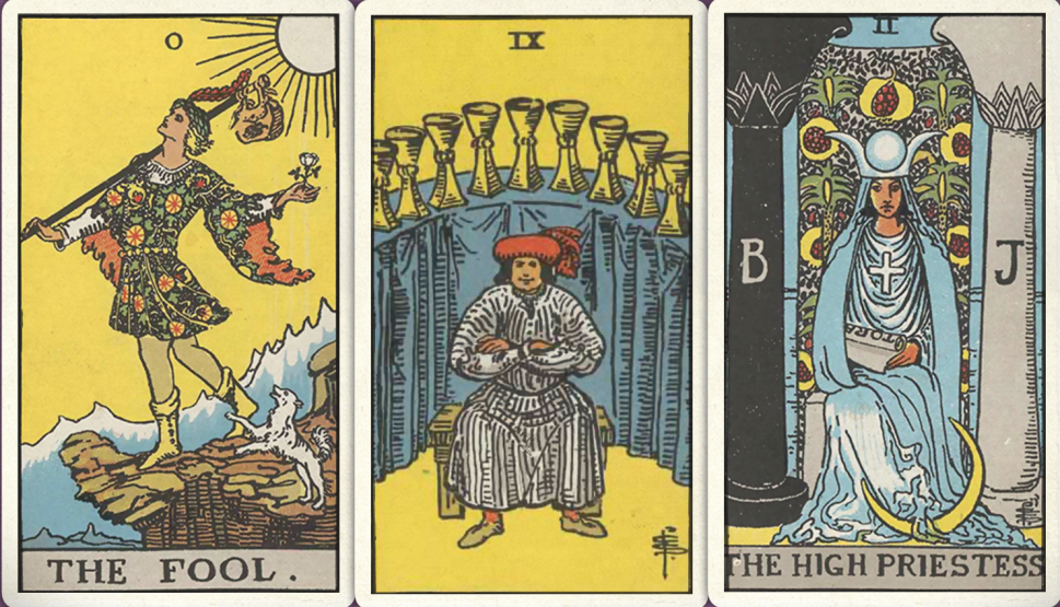 卜牌:愚人+ 圣杯九+ 女祭司+