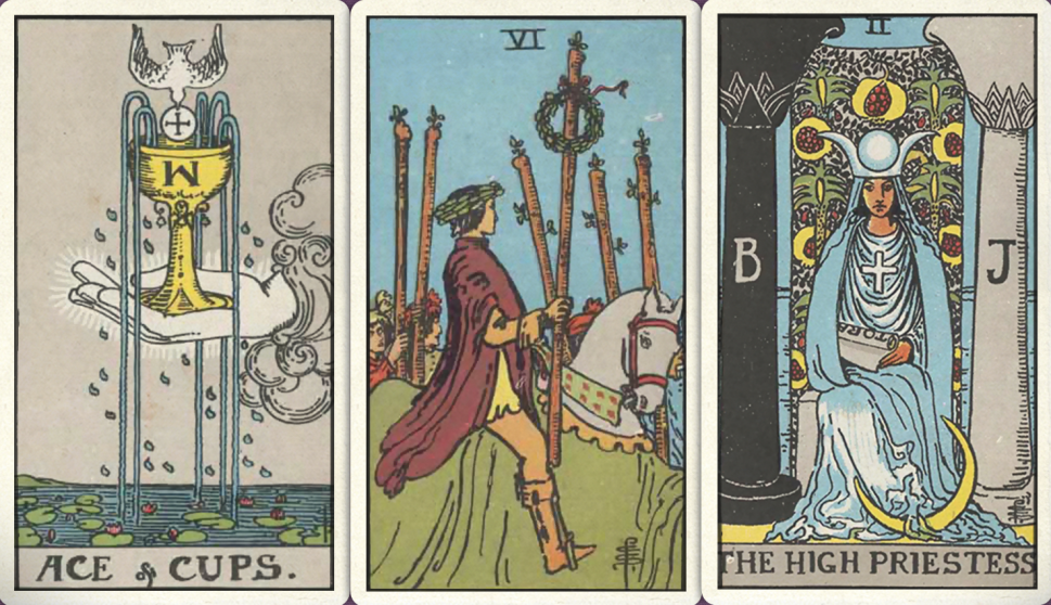 卜牌:圣杯首牌+ 权杖六+ 女祭司+