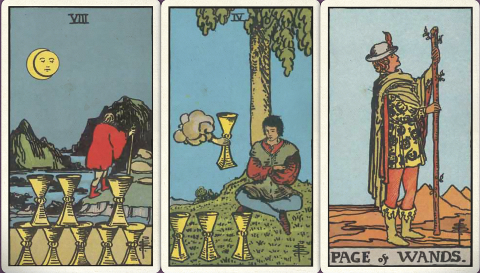 卜牌:圣杯八+ 圣杯四+ 权杖侍从+