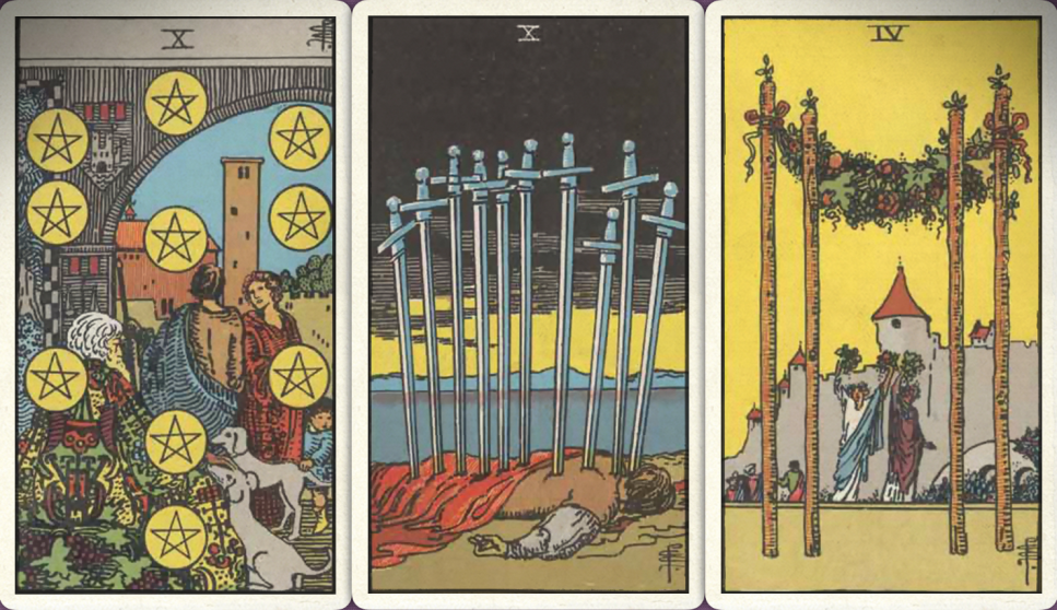 卜牌:星币十+ 宝剑十+ 权杖四+