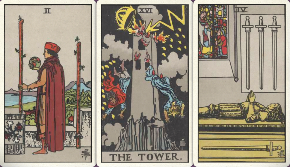 卜牌:权杖二+ 高塔+ 宝剑四+