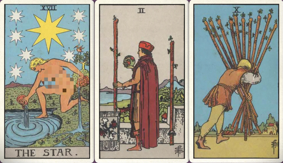 卜牌:星星+ 权杖二+ 权杖十+
