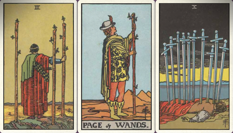 卜牌:权杖三+ 权杖侍从+ 宝剑十+