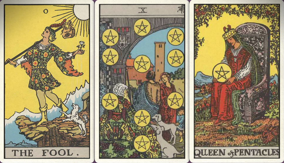 卜牌:愚人+ 星币十+ 星币皇后+