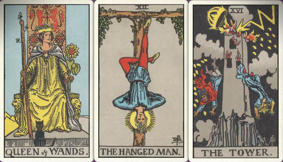 卜牌:权杖皇后+ 倒吊人+ 高塔+