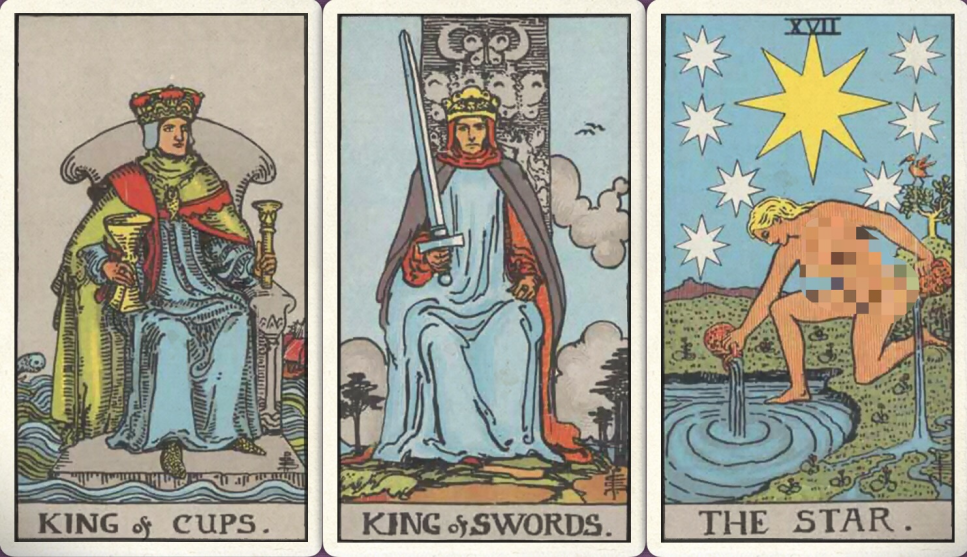 卜牌:圣杯皇帝+ 宝剑皇帝+ 星星+