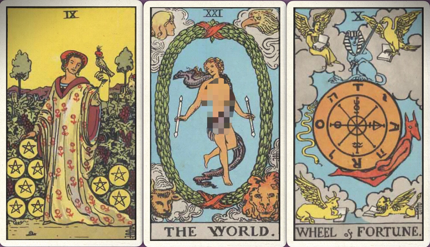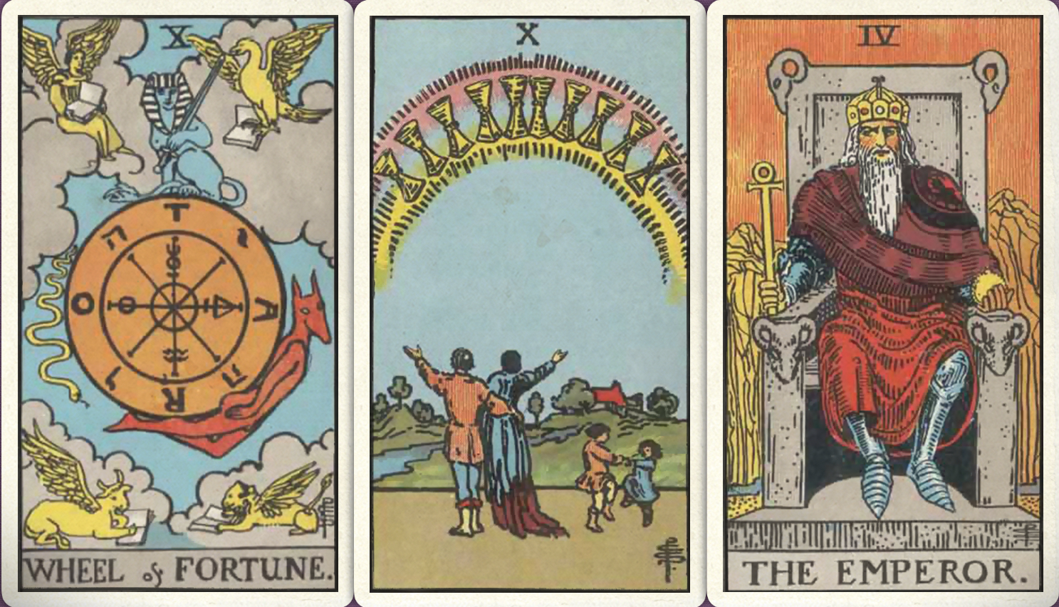 卜牌:命运之轮+ 圣杯十+ 皇帝+