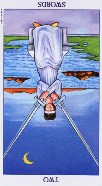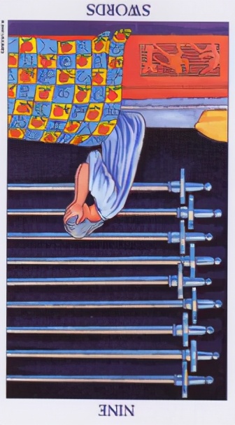 分析:宝剑九牌上的人处于伤心的模样,可以看出,他其实是个内心有伤的人,处于逆位也提醒了这个伤隐藏在他心里,也影响了他的浪漫因子。除非你疗愈治愈了他的心伤,不然让他浪漫起来有点难。