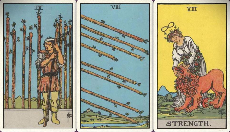 卜牌:权杖六+ 权杖八+ 力量+