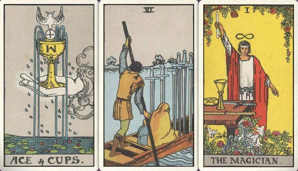 解析:圣杯首牌+ 宝剑六+ 魔法师+